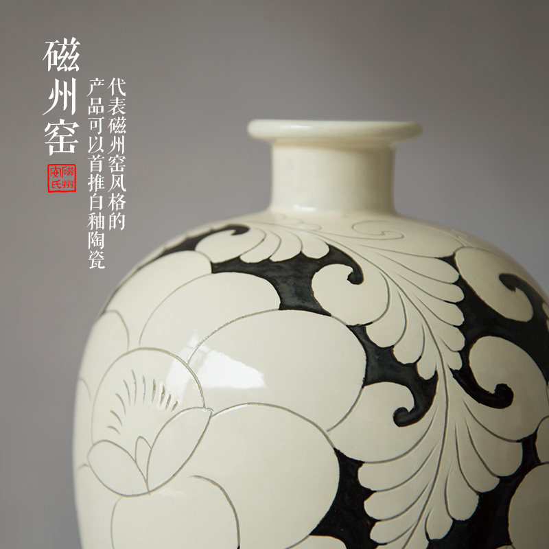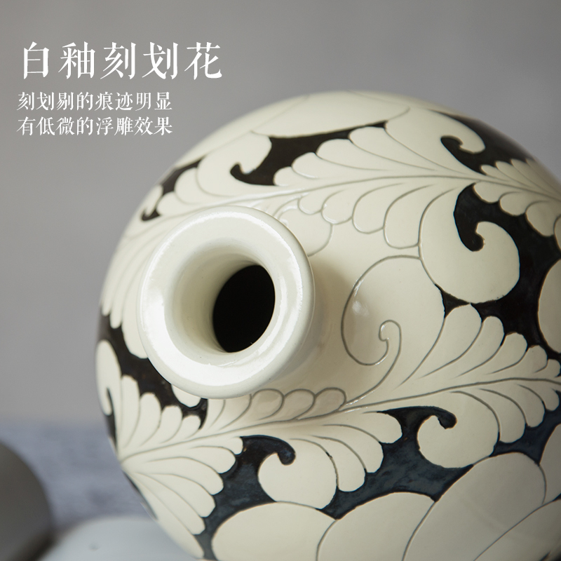 商品名称:磁州窑陶瓷器手工刻花中式花瓶摆件新中式客厅装饰玄关摆设牡丹