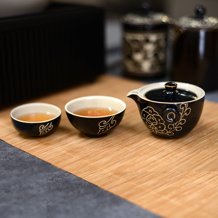 商品名称:磁州窑茶具礼品快客杯一壶二杯便携旅行单人陶瓷茶壶泡茶杯