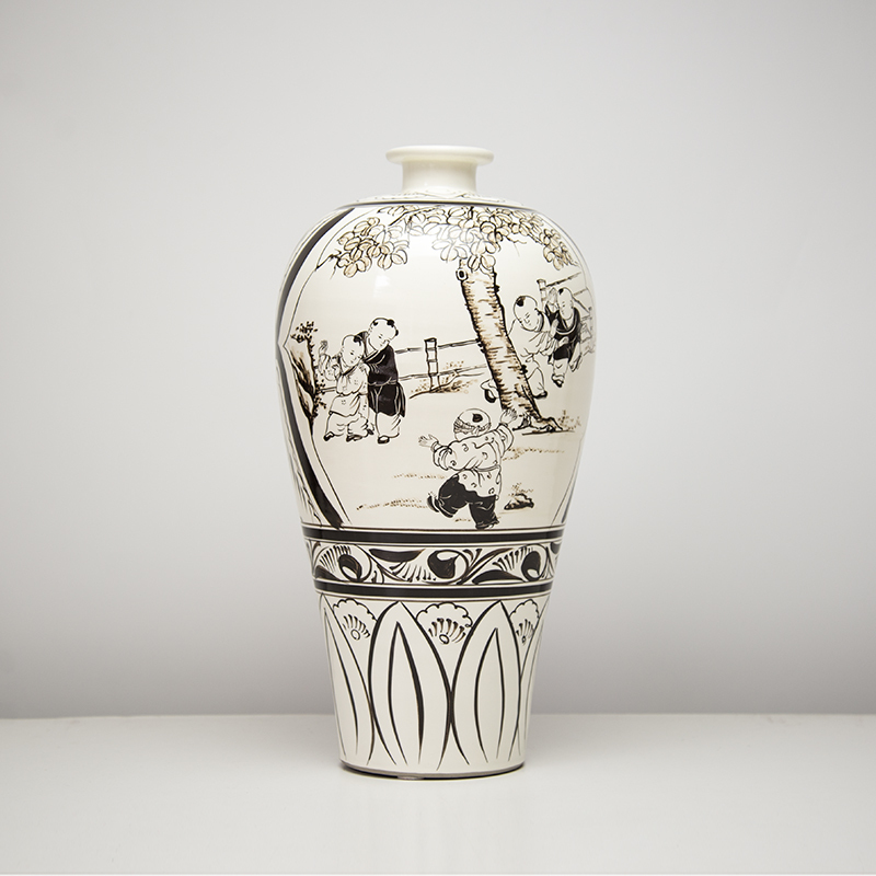磁州窑手绘胡服骑射梅瓶中国风瓷器邯郸典故工艺礼品摆件