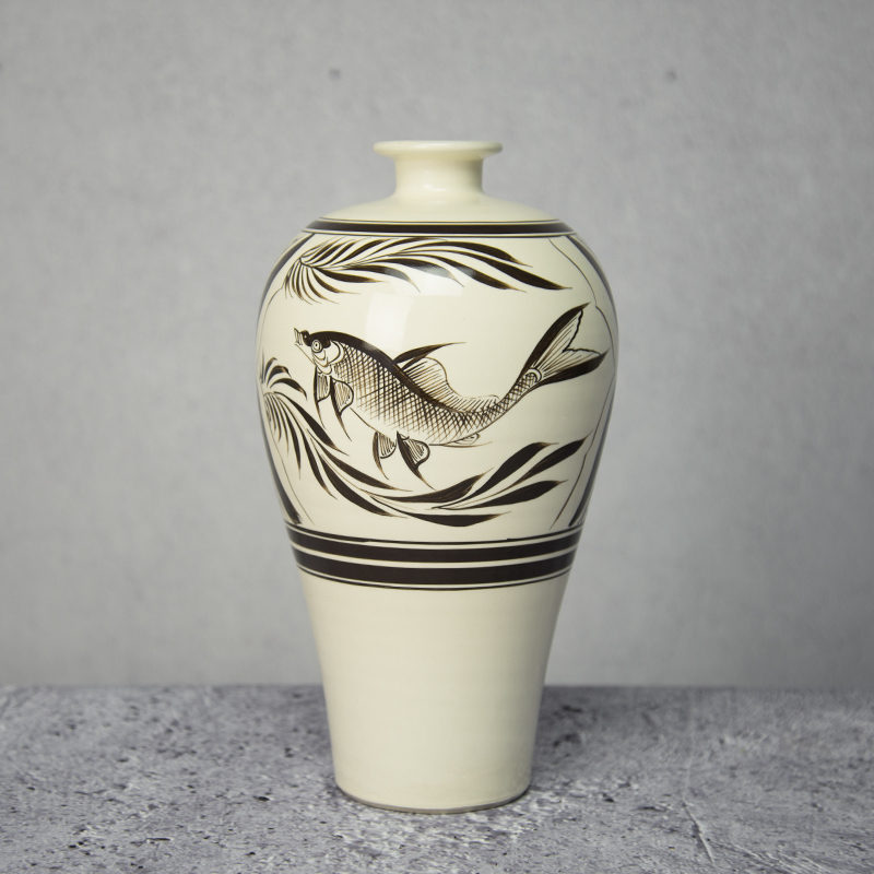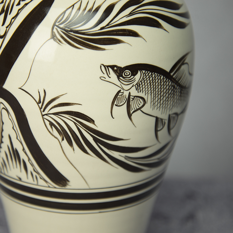 商品名称:磁州窑大家陶艺 鱼藻纹梅瓶 花瓶 客厅装饰摆件 花道插花器瓶
