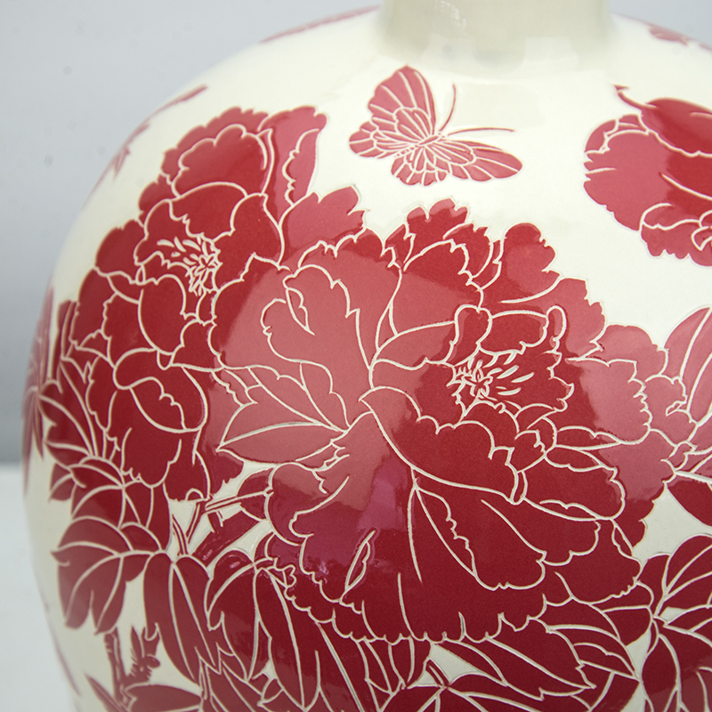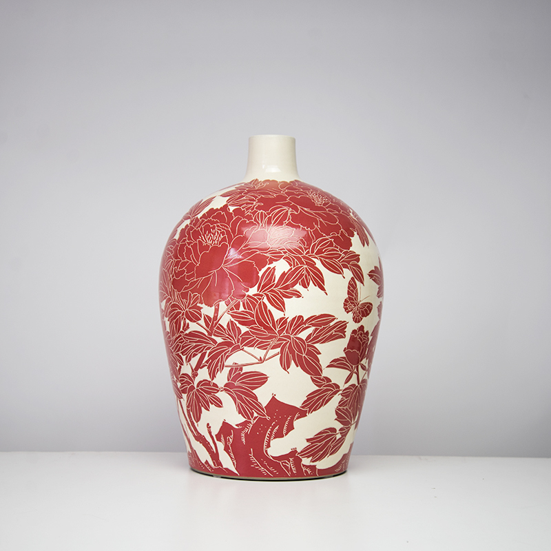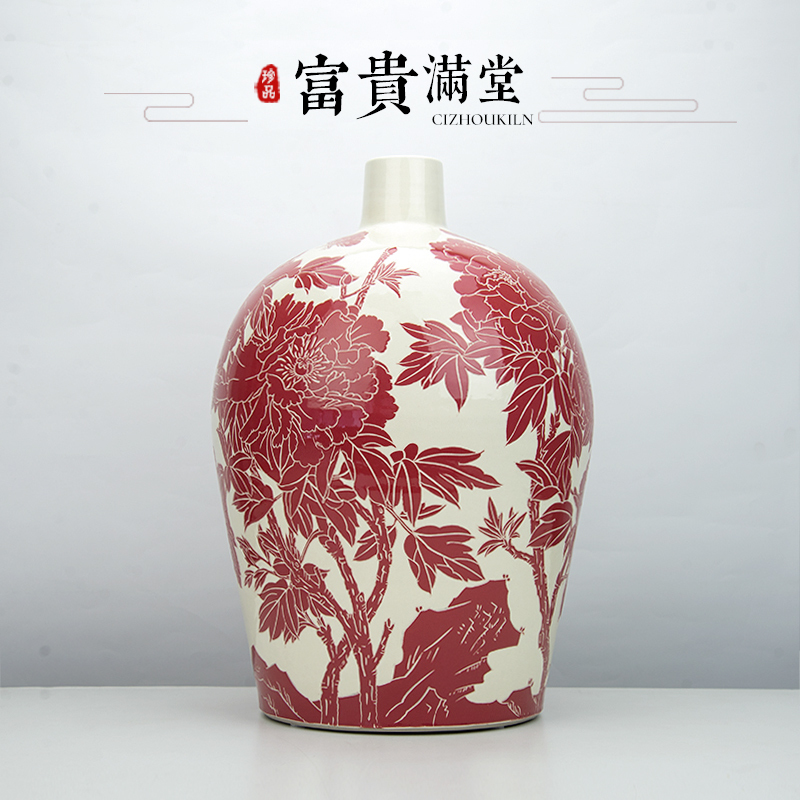 商品名称:磁州窑陶瓷花瓶摆件精美红剔花工艺瓷器现代家居装饰瓶富贵满堂