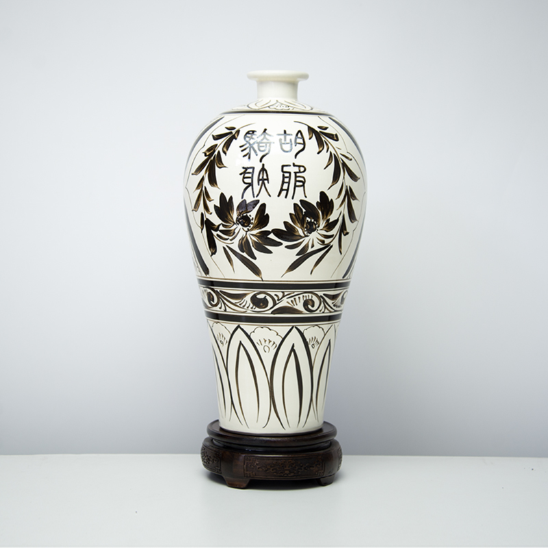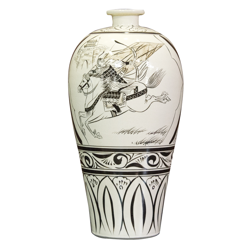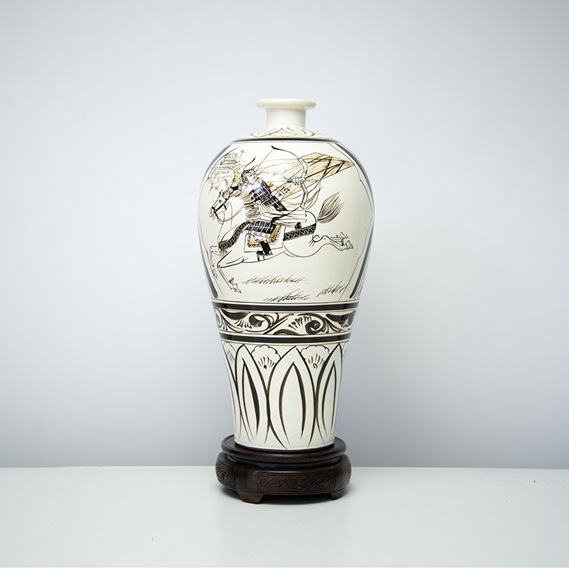 商品名称:磁州窑手绘胡服骑射梅瓶中国风瓷器邯郸典故工艺礼品摆件