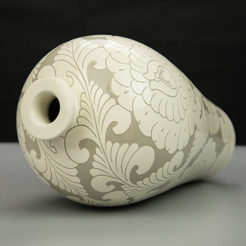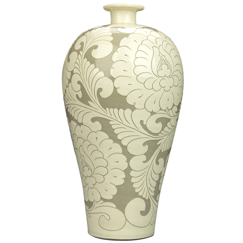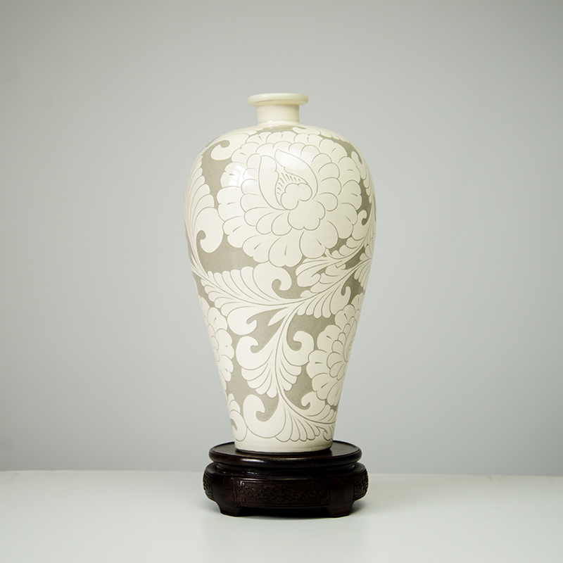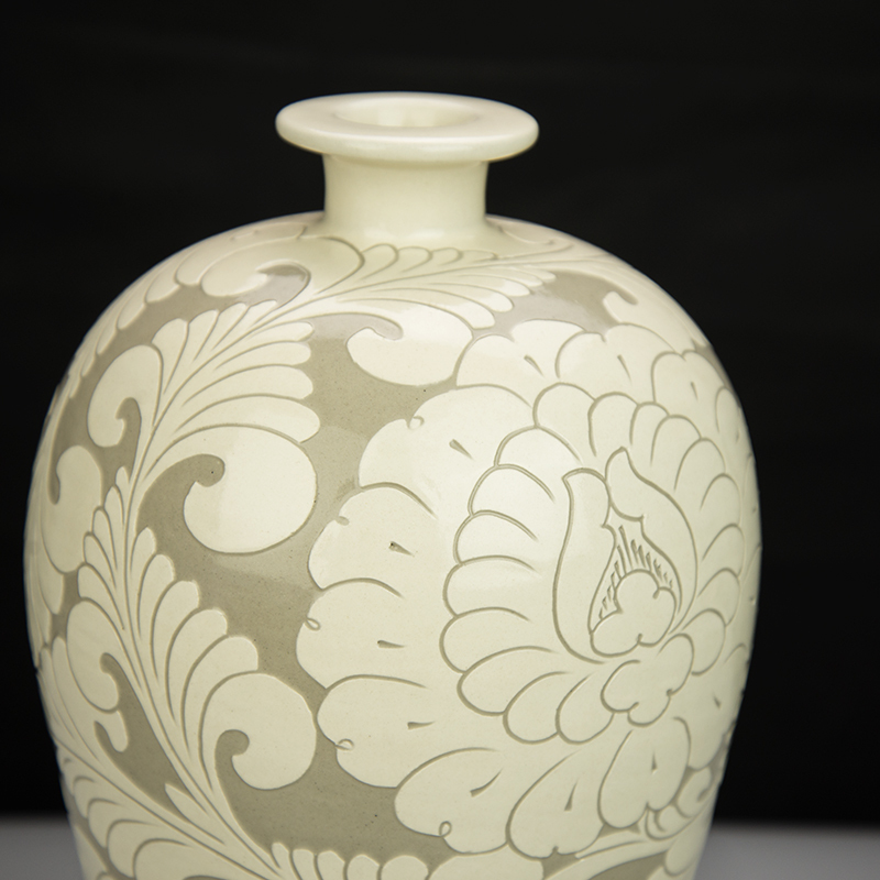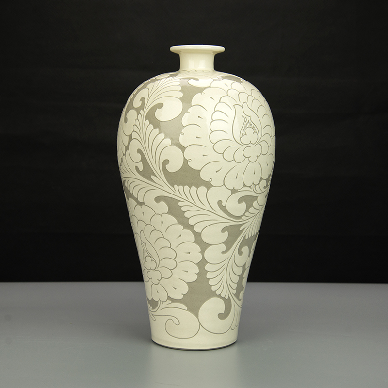 商品名称:安氏磁州窑瓷器白色花瓶剔刻牡丹花现代简约小口陶瓷花瓶摆件