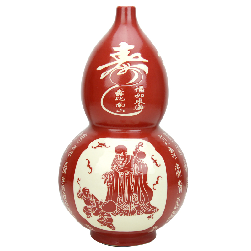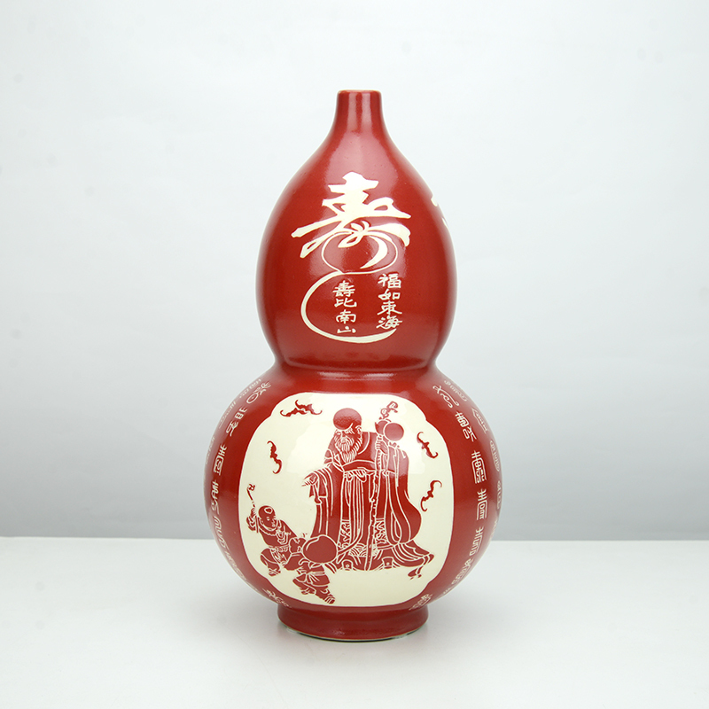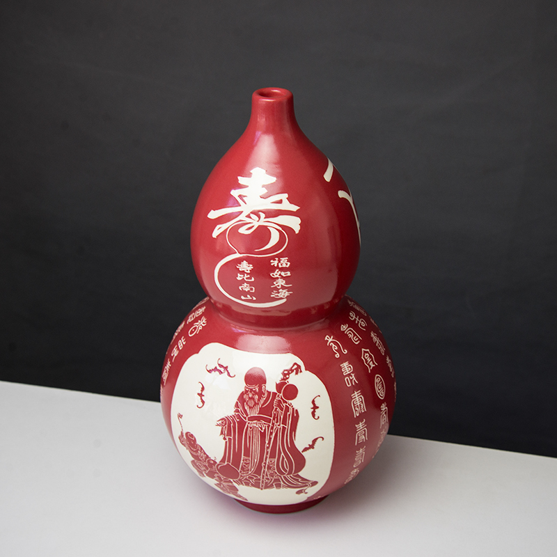 商品名称:磁州窑高档红色花瓶百寿图葫芦瓶陶瓷老人祝寿礼物中国红