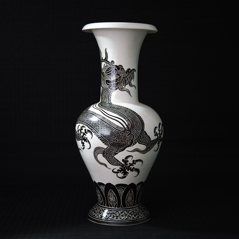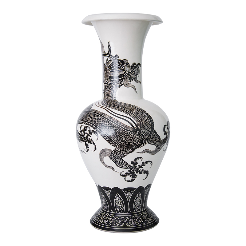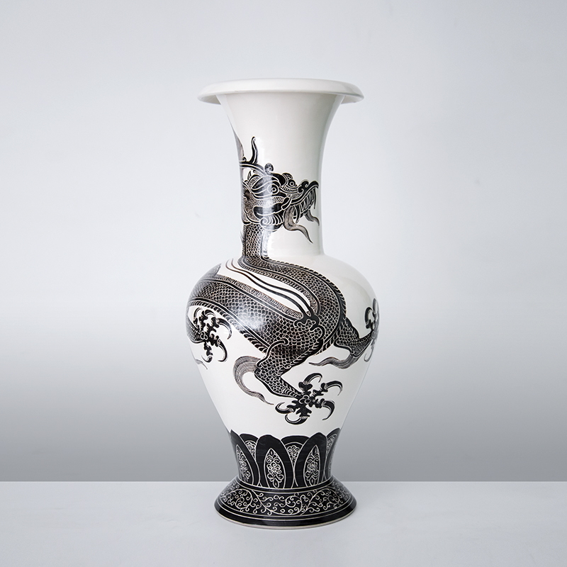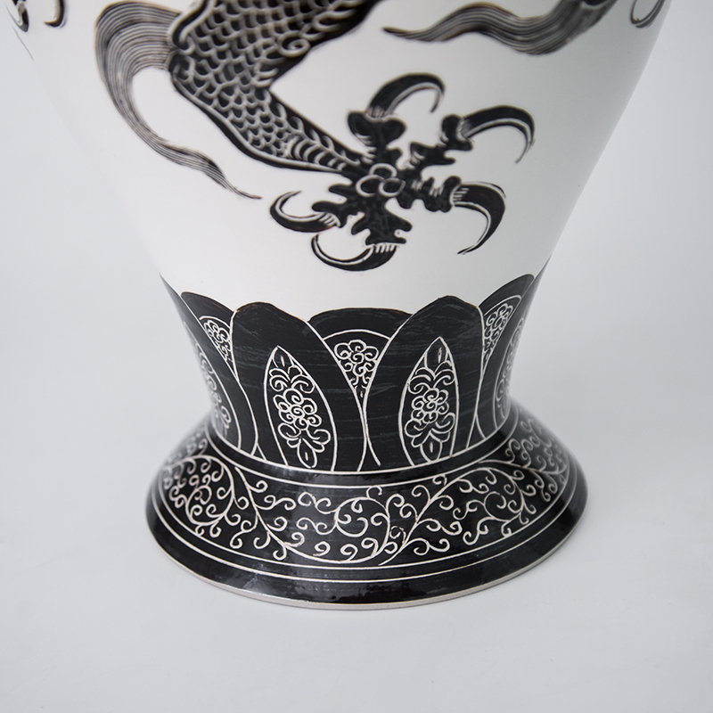 商品名称:大家陶艺安氏磁州窑瓷器仿宋陶瓷花瓶摆件中式黑剔花龙纹长颈瓶