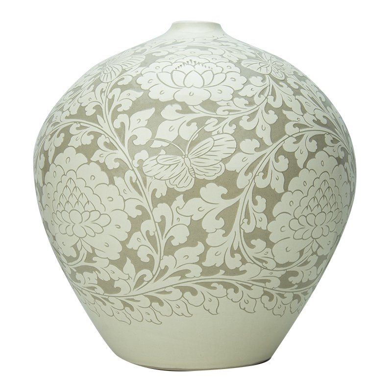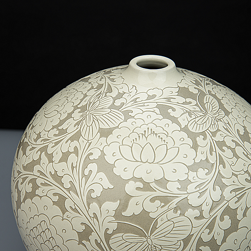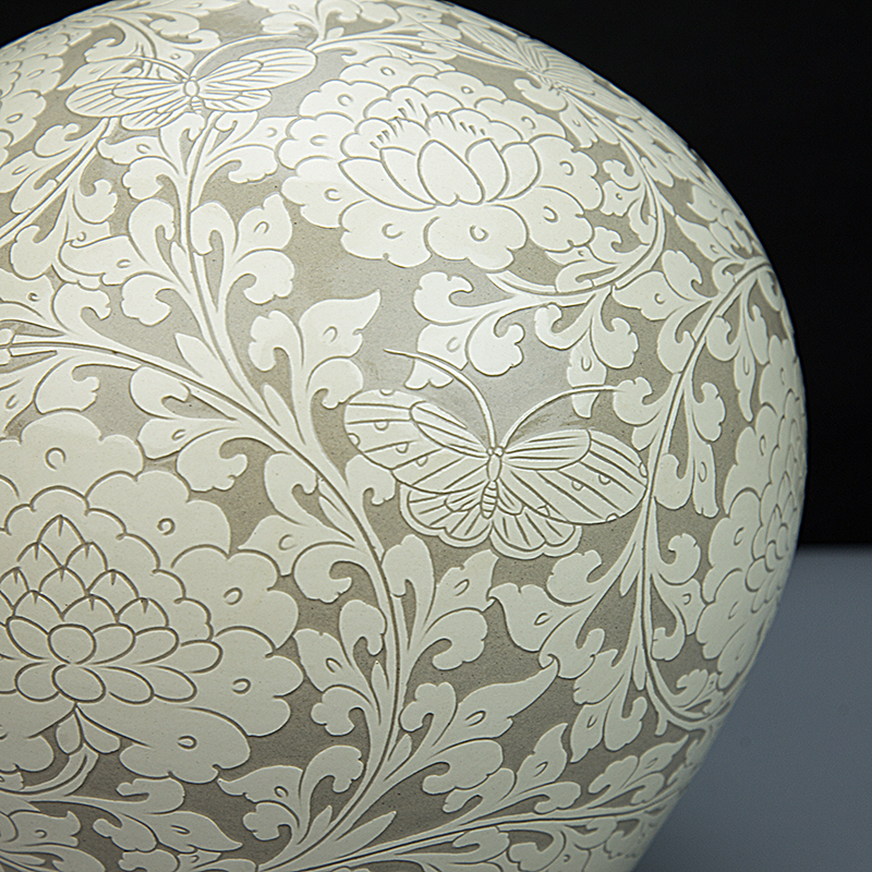 商品名称:磁州窑高档瓷器摆件中式陶瓷花瓶手工拉坯白色刻花工艺品摆件客厅