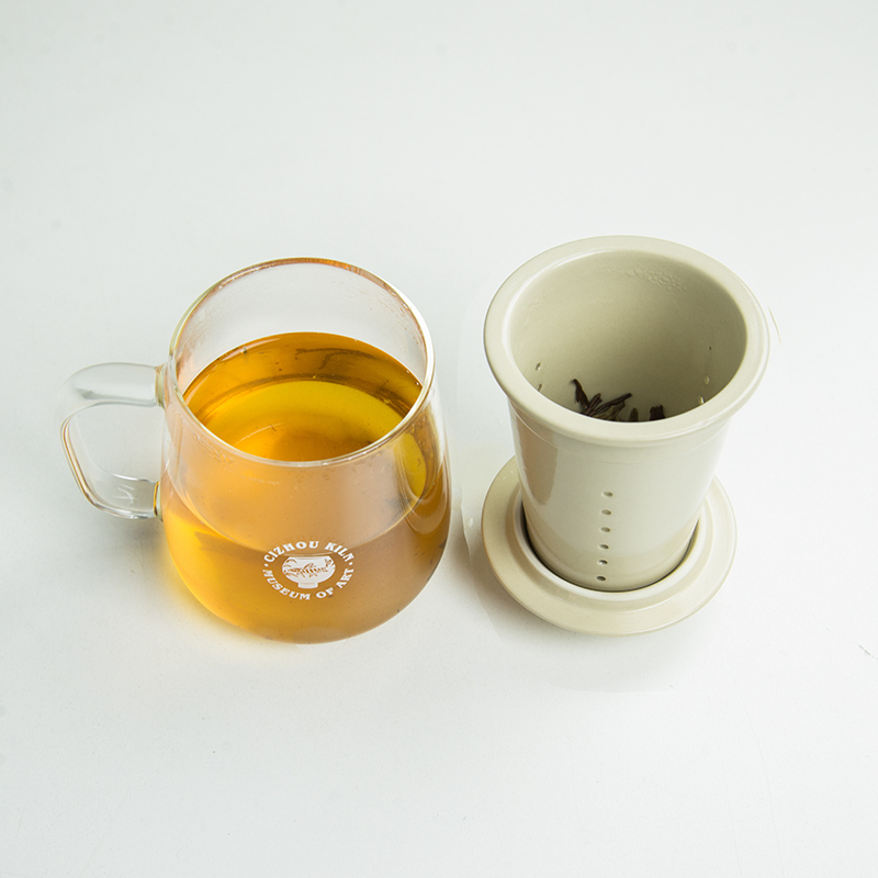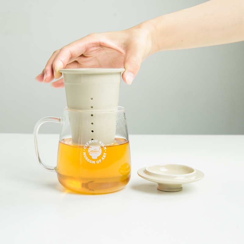 加厚耐高温玻璃杯带把手家用茶水分离泡茶杯陶瓷茶漏