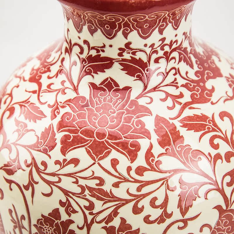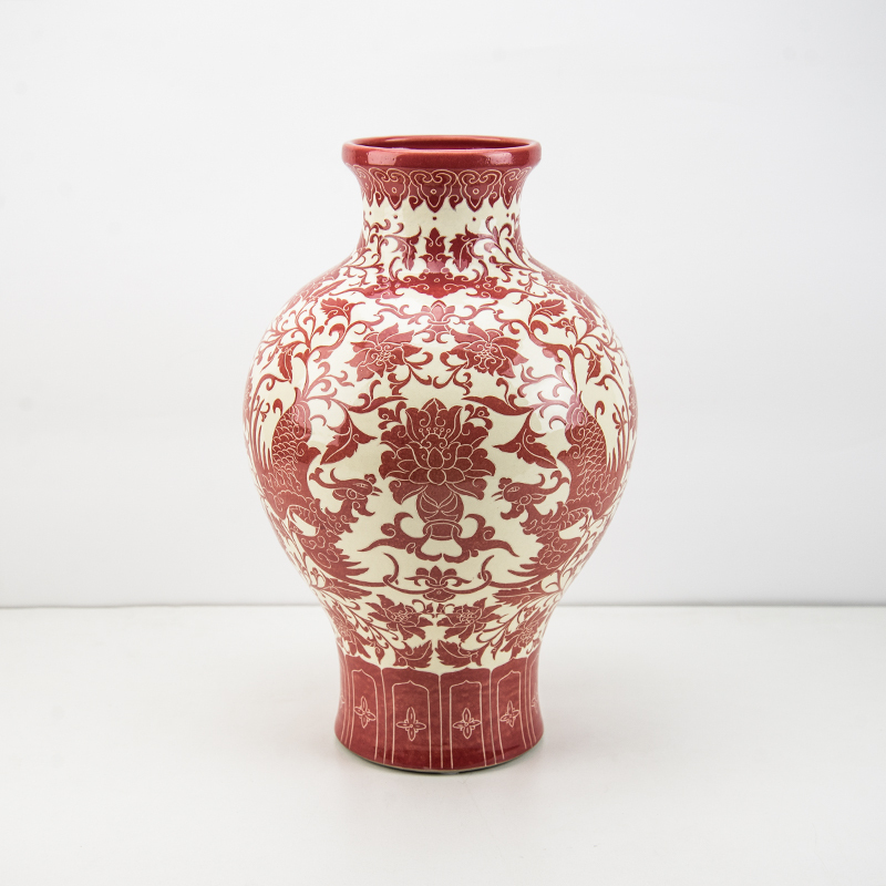 商品名称:磁州窑瓷器红色陶瓷中式花瓶纯手工剔刻花