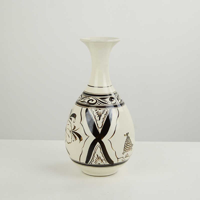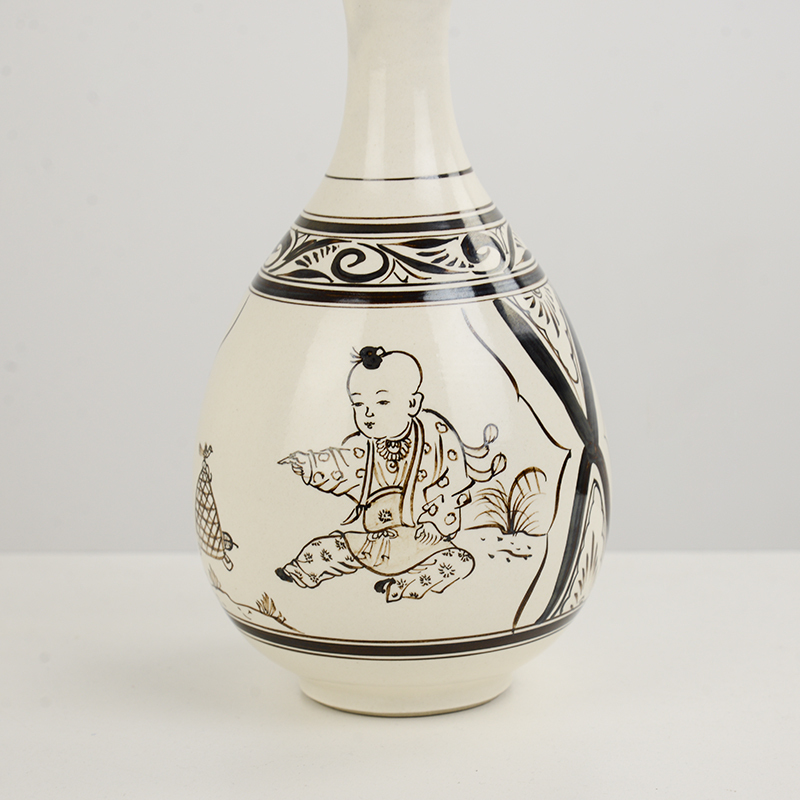 商品名称:磁州窑仿古花瓶摆件白地黑绘童戏玉壶春瓶插花干花陶瓷手绘客厅