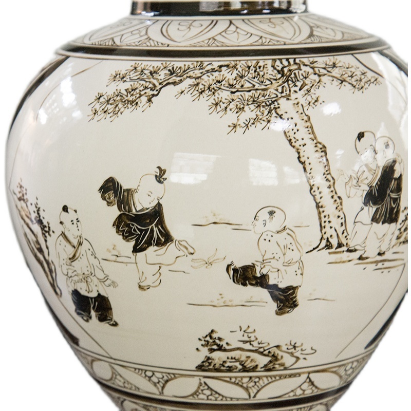 商品名称:磁州窑瓷器仿古摆件白地黑绘荷口瓶陶瓷手绘客厅落地花瓶瓶高75cm