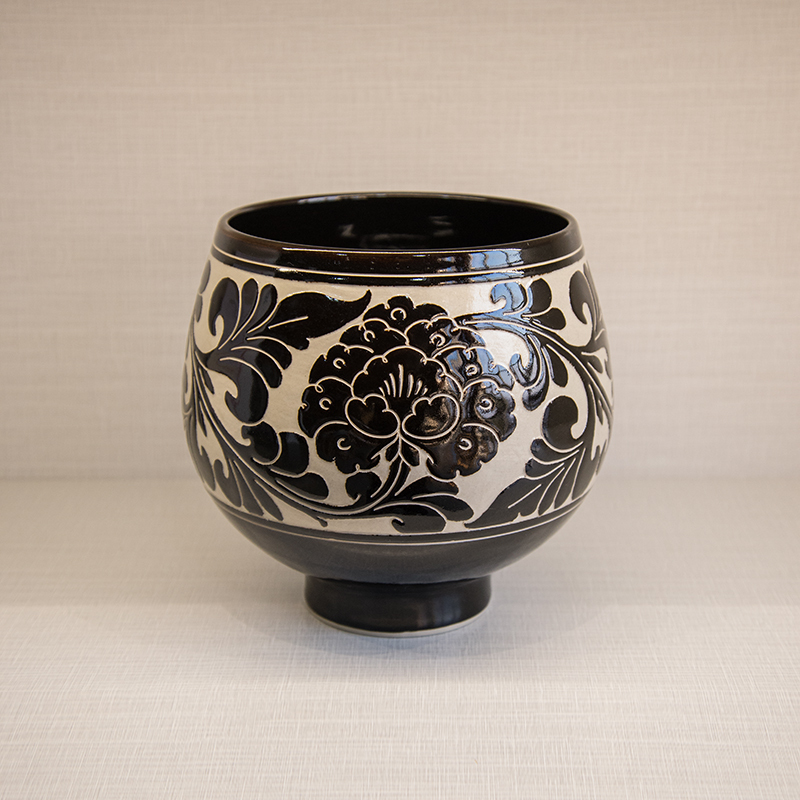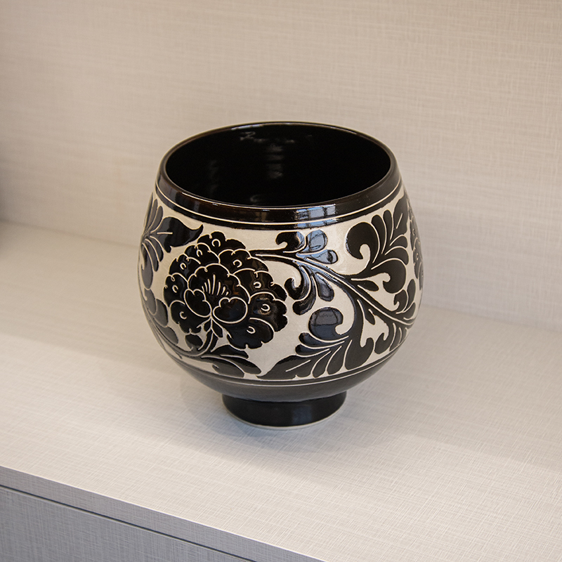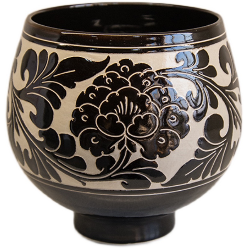 磁州窑瓷器工艺品中式摆件家居玄关书房高档装饰纯手工雕刻储物罐